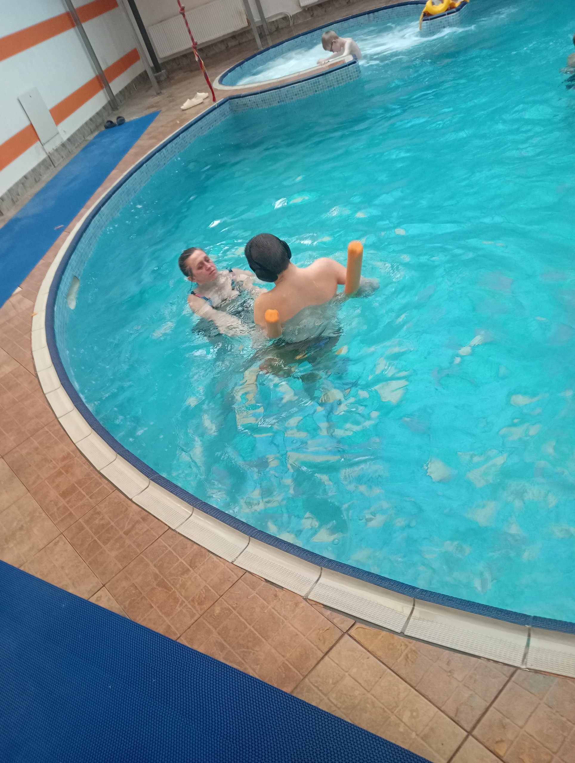 Обе семьи воспитывают детей инвалидов, но у каждой своя история и свои успехи. Так старший из мальчиков уже уверенно держится на воде и спокойно посещает общественные, шумные места. Семья же ребенка помладше пришла первый раз в водную зону развлечений. Для обоих детей это необходимый опыт. Одним- закрепить полученные ранее результаты, другим узнать и получить что то новое. Но конечно же обе семьи наполнились энергией и позитивными эмоциями от проведенного времени в бассейне, джакузи и на горке.